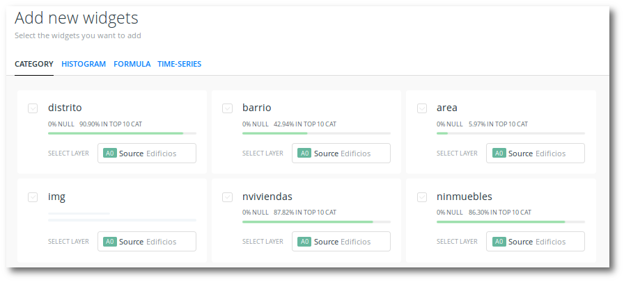 Con la incorporación de widget a nuestro mapa, podemos añadir valor a la representación gráfica de la información. La visualización de datos estadísticos o gráficos mejora la compresión de los mapas y pueden ayudar a identificar nuevos puntos de vista. Estos complementos permiten por ejemplo, añadir datos estadísticos como totales, valores medios, máximos o porcentajes. También pueden usarse para presentar agrupaciones o categorías de datos por campos y mostrarlos infografías interactivas o histogramas de series temporales.